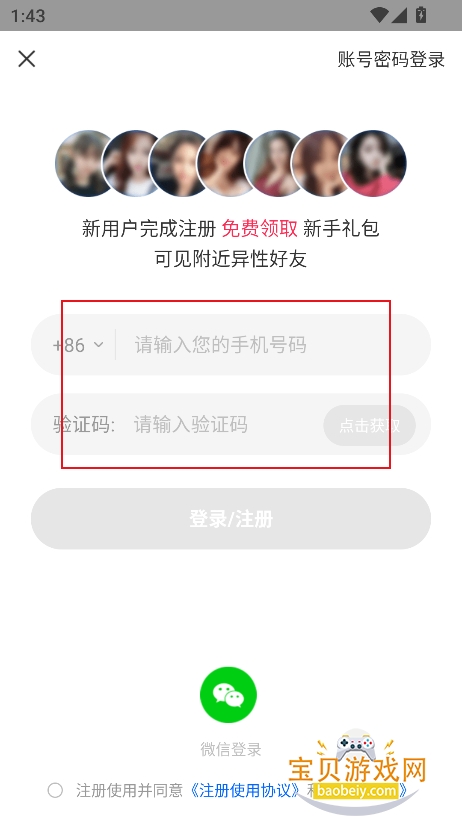 2、进入注册界面,输入手机号接收验证码,点击登录注册即可,完成注册即可领取免费视频卡