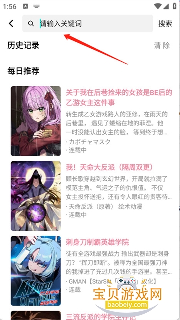 2、输入漫画名称的关键词,进行精准搜索星绘漫app官方版