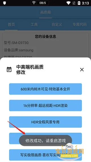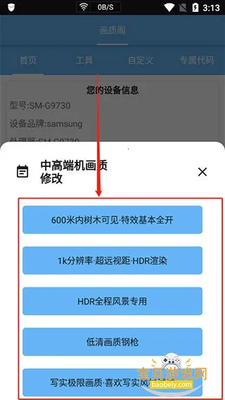 2. 内置多档位优化套餐,可根据设备性能一键选适配画质模式。