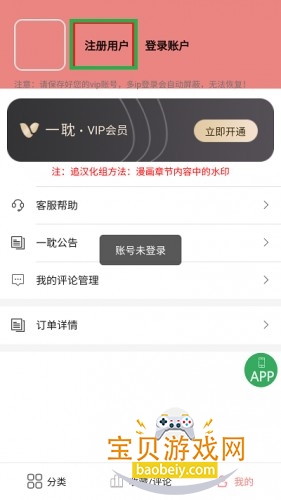 4、个人页面中需要点击上方的【注册账号】去进行注册。