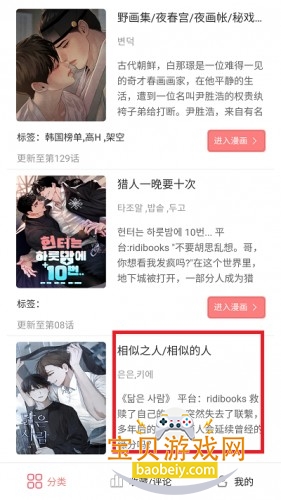 6、然后切换到【分类】界面,就可以筛选想看的漫画,或者是直接搜索漫画的名字就可以找到漫画。