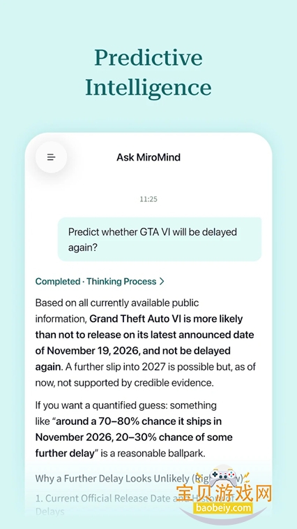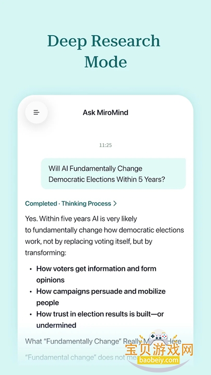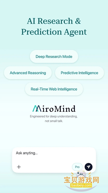 MiroMind下载官方正版,是一款主打发现式智能的创新型AI软件,跳出传统大模型“被动应答”局限,将深度推理能力+外部交互能力深度融合,打造更懂思考、更会验证、更可落地的智能辅助体验。无论是深度研究、复杂决策、专业分析还是日常效率提升,它都能突破常规AI的边界,为个人和企业提供更可靠、更超前的智能助力,重新定义AI的实用价值。