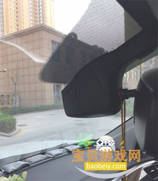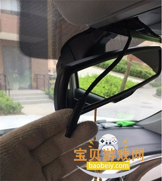 行车仪主机登场,准备安装它了。这个的安装还是比较简单的,对照里面内侧两边的卡扣位置,从下往上,卡到后视镜后边的底座上就行了,技术难度基本为0。