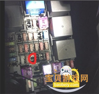 红圈处,是接ACC的保险,拔来,把红色线直接缠到保险的插脚上,再复原插回去即可。黄圈处,是接常电的保险,同样接行车仪的黄色细线,弄好复原。线接好后,把多余的线束用扎带整理一下,绑好了放到保险盒的左下方即可,不会影响手抠开关的。