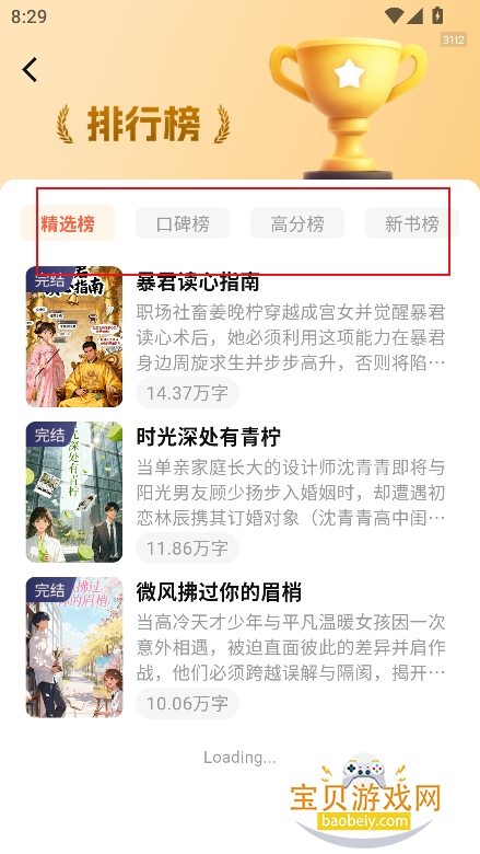 2、点击【更多】进入,还能够查看更丰富的榜单人气推荐书籍,根据人气内容进行筛选,可以发现更多优质好书