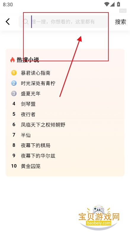 3、或者点击搜索框,输入小说名,作者名,精准检索喜欢的小说内容