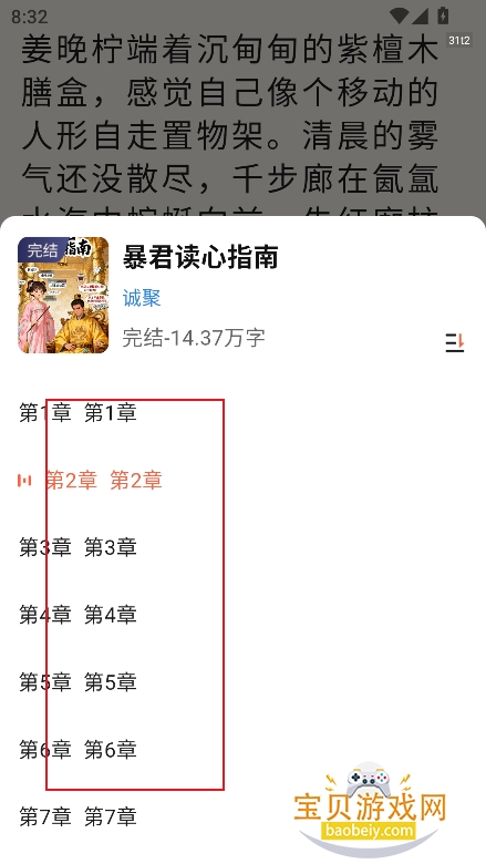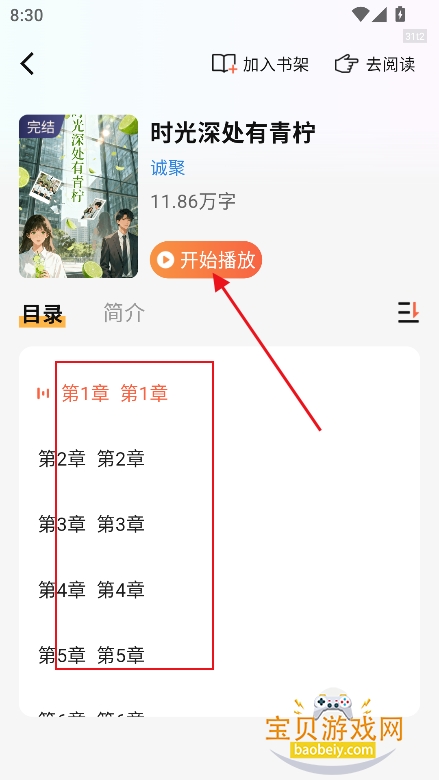 4、进入听书界面,选择章节,点击【开始播放】