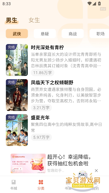 分类清晰好找:按题材、热度、更新时间分类,找书轻松不费劲。