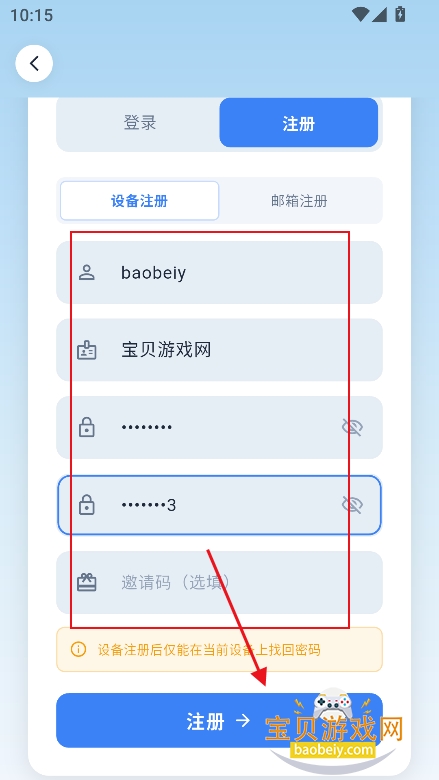 3、在注册界面,输入基本信息,点击注册即可