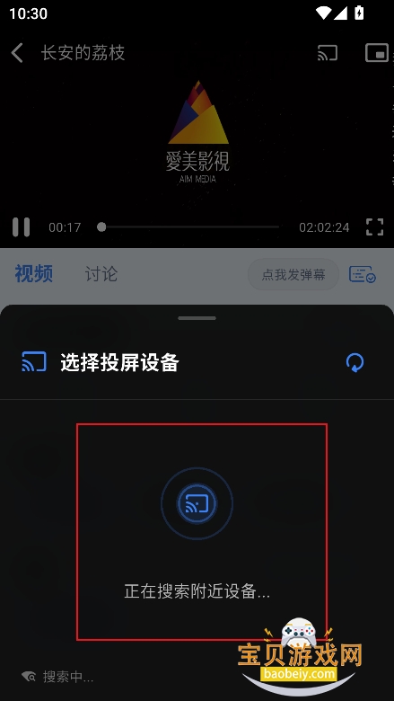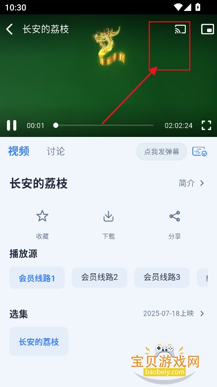 1、进入播放界面,点击右上角【投屏】