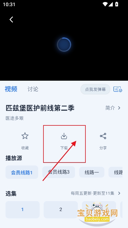 1、进入播放界面,点击【下载】图标