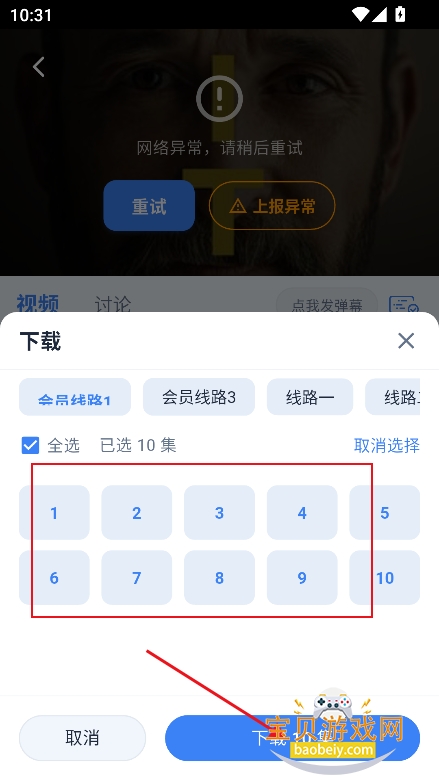 2、勾选需要下载的集数,点击【下载】