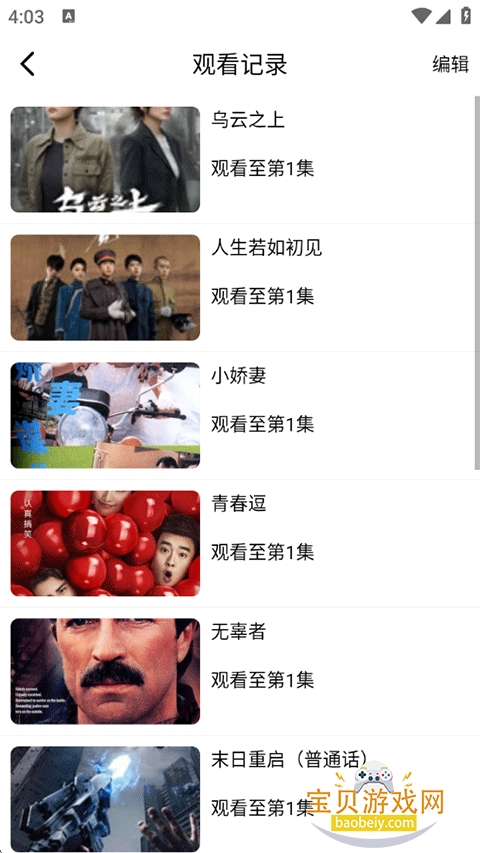 3、再点击中间的时钟图标,您的观看记录都在这里可以及时找到,还可以保留你的观看进度;