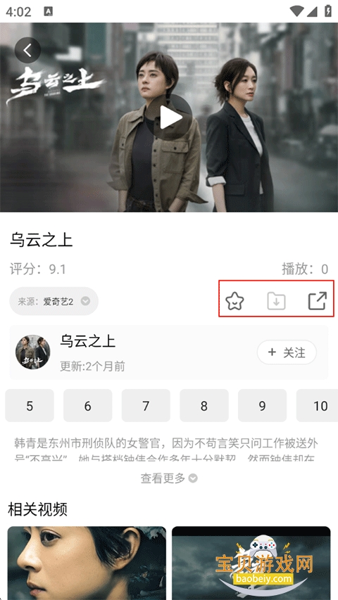 4、进入播放页开始观看,您可以对你喜欢的电影电视剧进行收藏下载分享,不过有些视频资源由于版权原因无法下载;