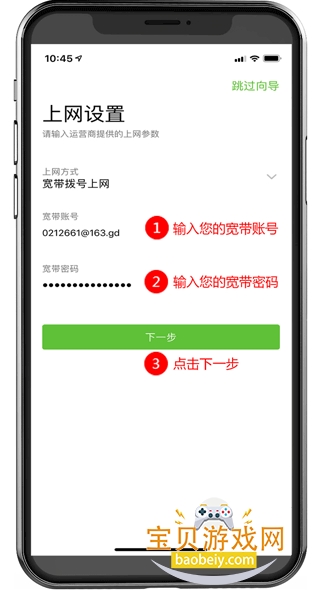 (1) 如果检测到上网方式是宽带拨号上网,输入宽带运营商提供的宽带账号和宽带密码,如下图: