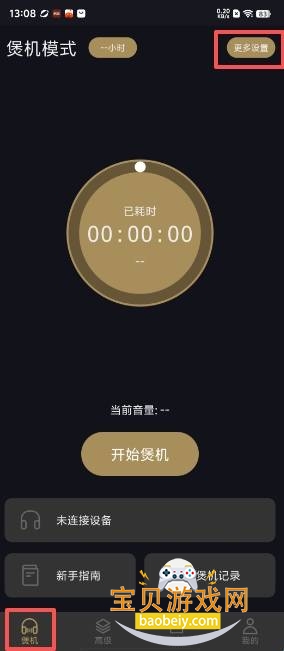1、第一步:打开软件进入“煲机”页面,找到页面右上角“更多设置”