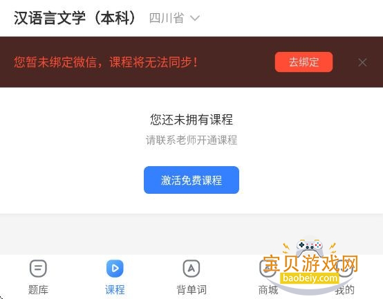 用户需要绑定自己的微信才能同步课程,用户需要联系老师才能开通课程。