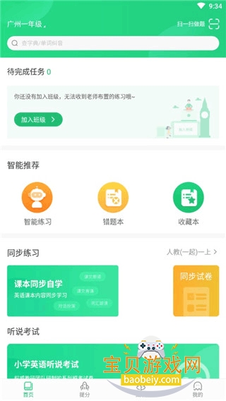2、进入app首页,可以加入班级,选择智能练习,同步训练。