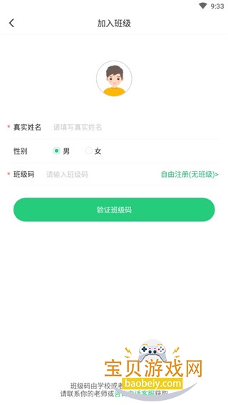 1、打开软件进入首页,想要使用的话需要先注册,无学校班级的用户可以选择自由注册。