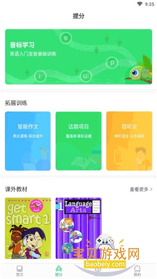 3、然后找到提分按钮并点击,可以进行音标学习以及拓展训练。