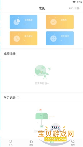 4、点击成长一栏可以查看成绩记录,平均成绩,并将成绩以统计图的形式直观展现出来。