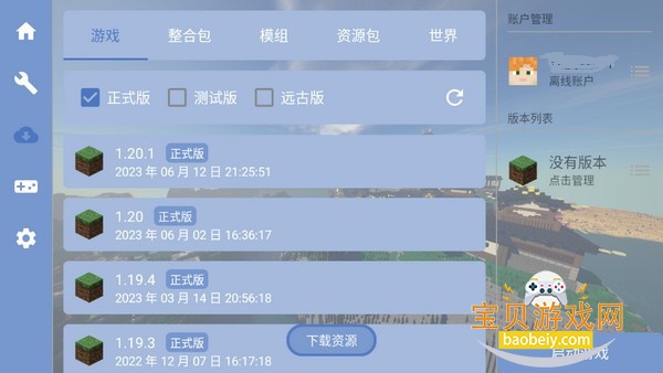 2、账号创建成功后,要选择游戏栏,在这里下载游戏本体,从1.0到最新版本都有,大家可以自行选择。