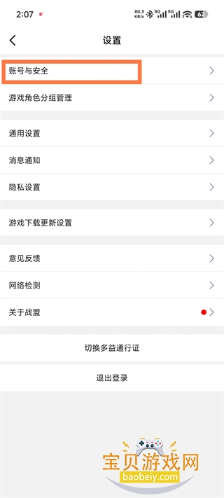 3、在设置列表中,点击【账号与安全】选项。
