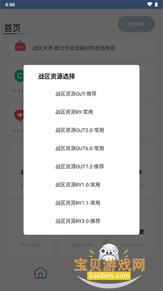 1、首先用户打开安安王者战区软件,首先将战区资源选择为推荐项