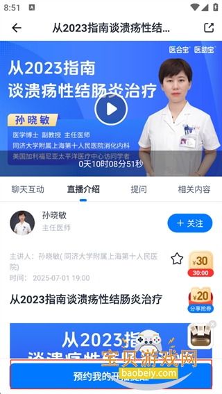 医会宝2026最新版是专业医学知识交流平台,为医疗从业者、学者及医学生打造。有多样课程、科普专区、直播等功能,亮点是聚合顶尖会议资源,优势众多,如资料下载、学术交流社区等,方便医学学习与交流。