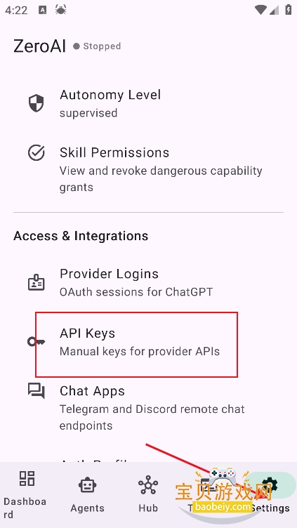 1、进入设置界面,点击【api key】