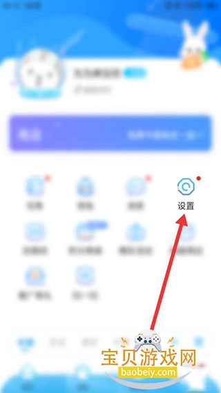 2、进入到我的界面后,我们再点击箭头所指的设置选项即可。