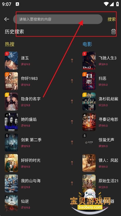 3、或者直接点击搜索框,输入关键词,精准检索喜欢的影视