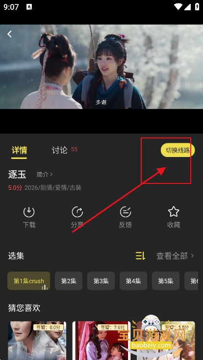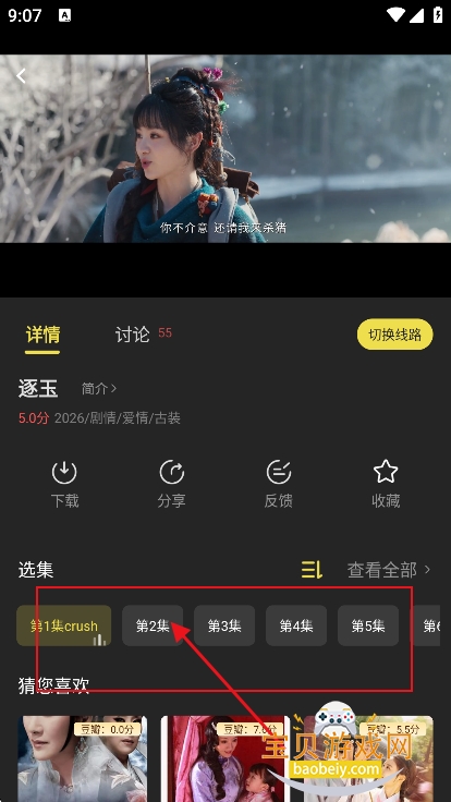 4、进入喜欢的影视界面,选集进行播放就可以了
