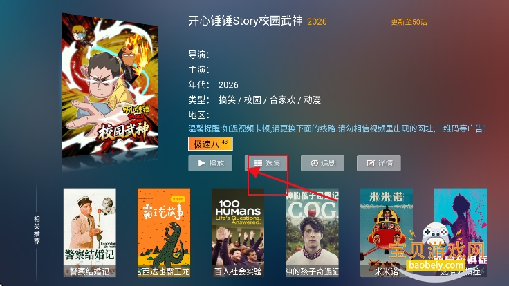3、进入喜欢的影视播放界面,点击选集