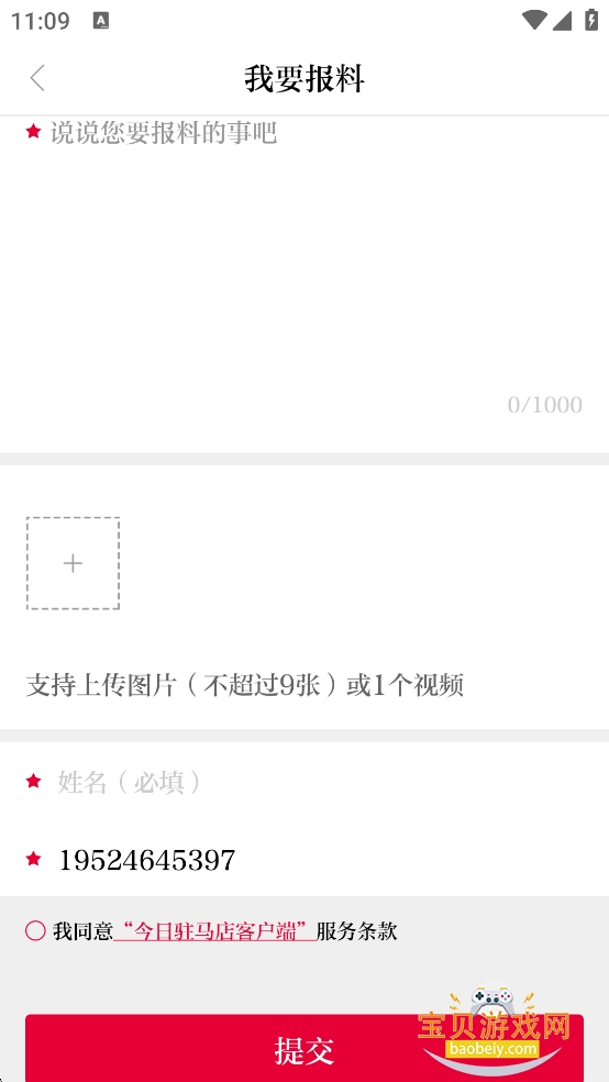 3、输入报料的内容后点击提交即可