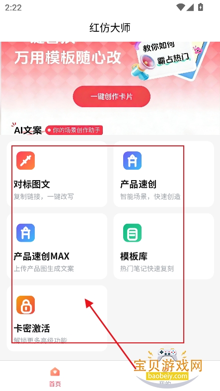 1、进入首页,提供超多小红书辅助功能,任意选择你需要的功能