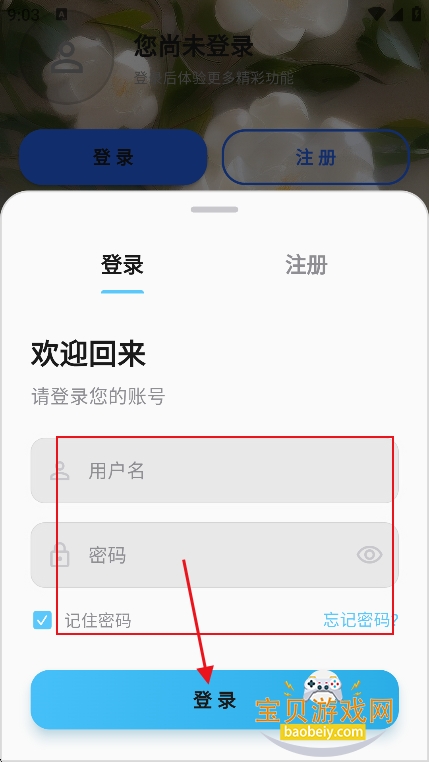 2、在登录界面,输入账号密码,点击登录