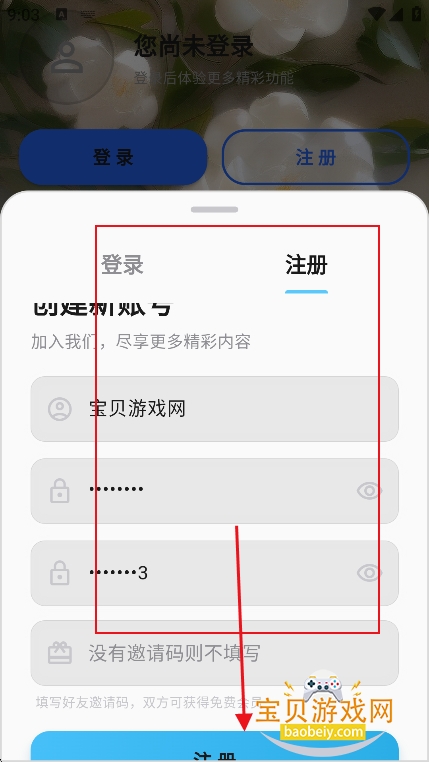 3、在注册界面,输入基本信息,点击注册,就可以完成账号注册流程