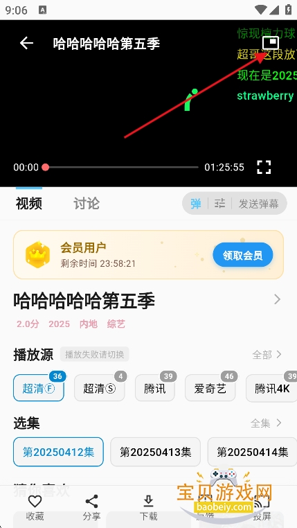5、在播放界面,选择剧集,点击右上角投屏图标,即可投屏观看