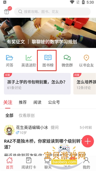 1、打开小花生App,点击图书榜
