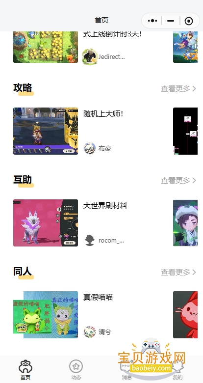 1、进入首页,可以查看官方资讯内容,以及最新游戏上新信息等,攻略,同人内容等