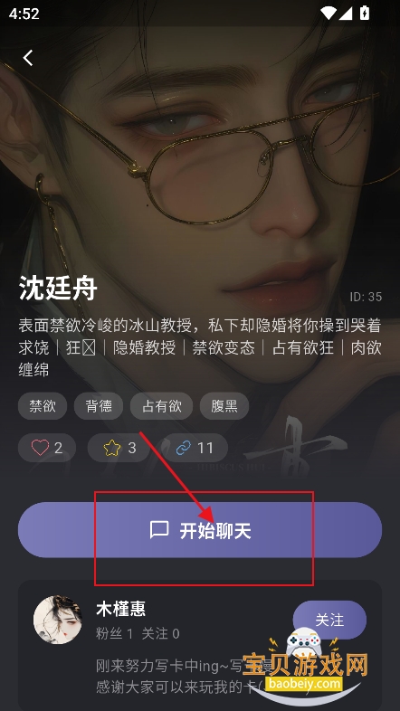 4、进入喜欢的角色界面,点击【开始聊天】