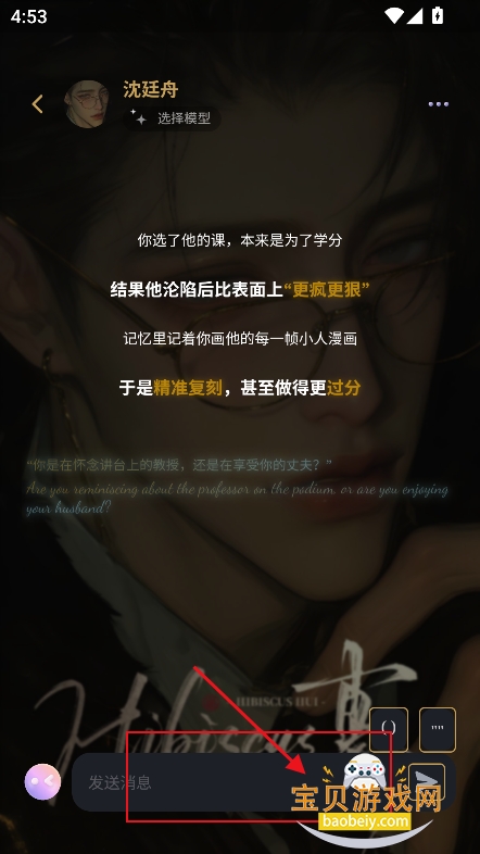5、最后在对话框,输入对话内容,点击发送,与角色互动即可
