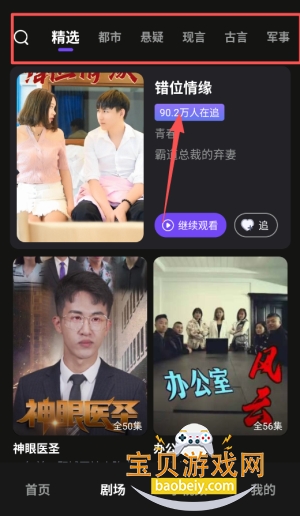 1、打开app完成注册后,你可以通过首页的推荐或分类,快速找到感兴趣的短剧类型,比如都市、逆袭等题材。