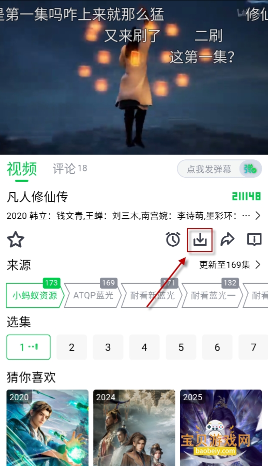 3、选择一部影视进入播放界面后就可以观看了,接着点击“下载”按钮。