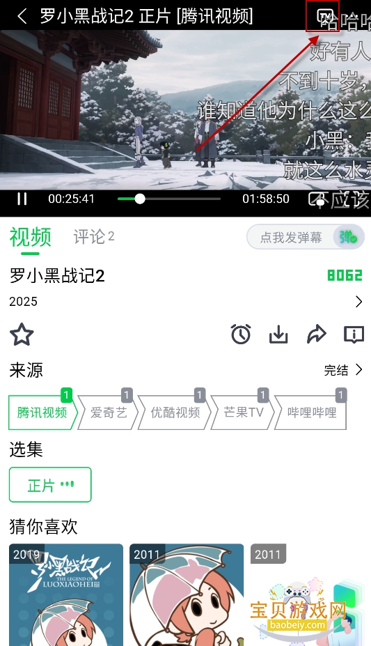 2、然后点击进入播放界面,接着点击右上角的TV图标。