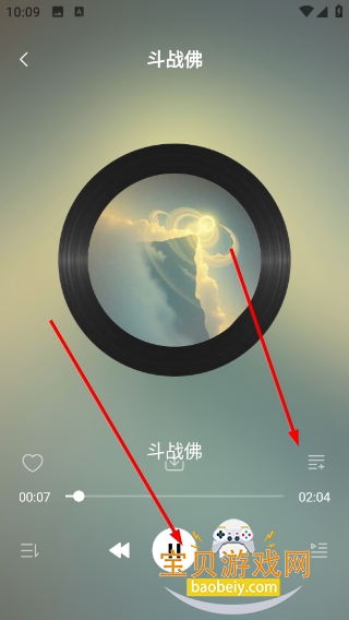 3、进入歌曲播放页点击中间的暂停按钮可暂停播放,点击右侧列表图标可查看曲目列表。