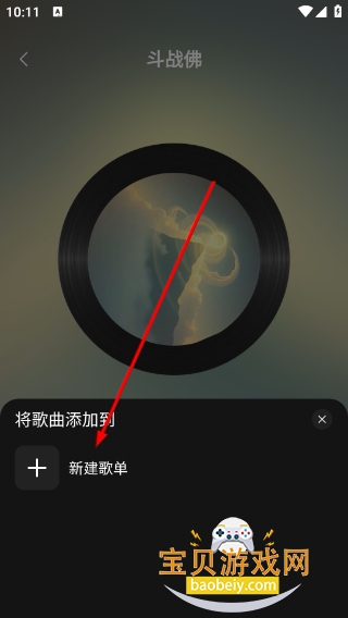 4、在播放页点击添加按钮可选择新建歌单选项,将当前歌曲添加到新建歌单中。