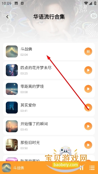 2、进入华语流行合集页面在歌曲列表点击目标歌曲,即可开始播放该曲目。