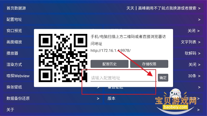 3、输入配置地址,点击【确定】返回首页即可